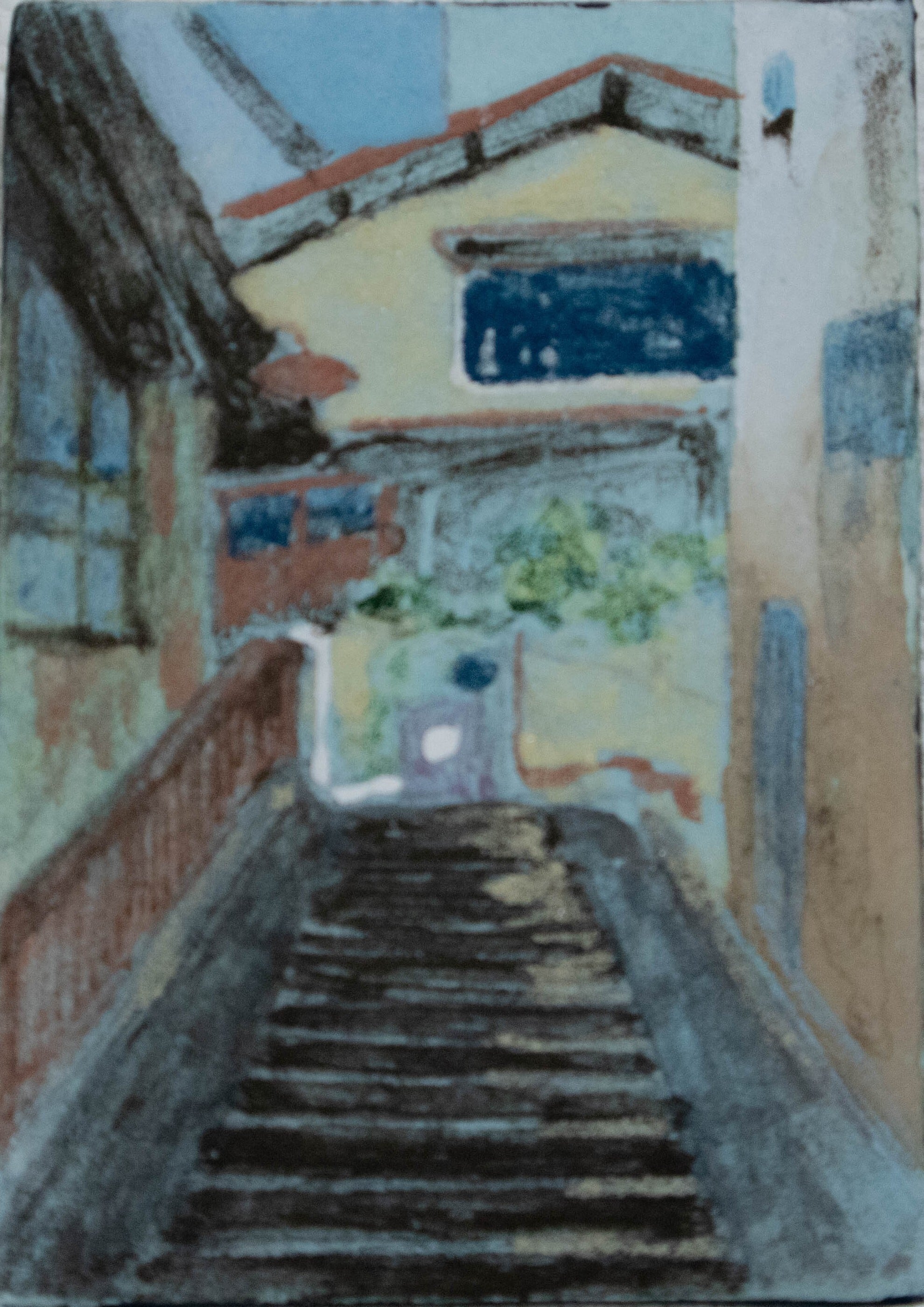 雑記録002 / 海の街 (ミニ日本画)
